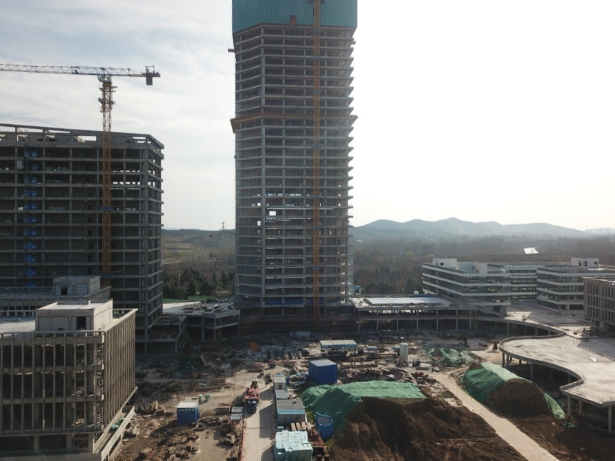 淮北第一高樓——商務(wù)政務(wù)中心采用框架核心筒結(jié)構(gòu),建筑面積超7萬平方米,設(shè)計(jì)復(fù)雜、施工難度大,地下室出正負(fù)零后以平均7天一層的速度向上生長,工程部副部長張玉坤駐點(diǎn)管理,項(xiàng)目在做到質(zhì)量、安全雙優(yōu)的同時(shí),以不到一年的時(shí)間實(shí)現(xiàn)封頂,刷新淮北速度。項(xiàng)目不僅提前完成了年度節(jié)點(diǎn)目標(biāo),而且先后獲得2020年“安徽省建筑安全生產(chǎn)標(biāo)準(zhǔn)化工地”、“全國AAA安全文明標(biāo)準(zhǔn)化工地項(xiàng)目”的省級、國家級榮譽(yù),在全市范圍內(nèi)先后召開了兩次市住建局主辦的建筑質(zhì)量安全現(xiàn)場觀摩會,下一步將爭創(chuàng)“黃山杯”及“國優(yōu)”工程,做到進(jìn)度、質(zhì)量兩不誤。目前南區(qū)各主樓結(jié)構(gòu)已全部封頂,二次結(jié)構(gòu)、安裝工程完成70%,即將進(jìn)入幕墻和裝飾裝修穿插施工階段。