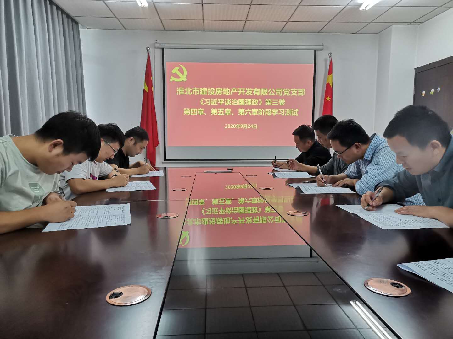 房地產(chǎn)黨支部9月24日組織全體黨員、入黨積極分子在會議室開展《習近平談治國理政》第三卷重要知識點測試。