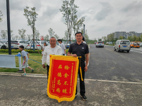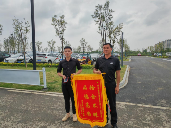 2023年6月17日晚上8南湖公園公司中湖項目部保安趙新代在金沙戲水沙灘巡查當中撿到價值九千多塊的蘋果手機一部,第一時間將情況匯報至公司物業(yè)群里,并積極主動嘗試聯(lián)系失主。通過多方打聽當晚終于物歸原主,失主找回手機后十分激動,為了表示感謝,失主第二天送來錦旗一面。