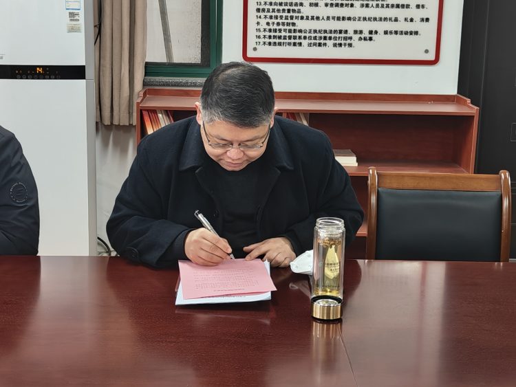 會后,全體紀(jì)檢監(jiān)察干部分別簽署了《拒絕酒駕醉駕承諾書》,紛紛表示簽訂承諾書,既是表率,也是約束,作為紀(jì)檢監(jiān)察干部,自覺以更高標(biāo)準(zhǔn)、更嚴(yán)要求踐行忠誠干凈擔(dān)當(dāng)!樹牢紀(jì)律和規(guī)矩意識,消除僥幸心理,從思想源頭上遏制紀(jì)檢監(jiān)察干部發(fā)生酒駕醉駕違紀(jì)違法行為,以實際行動為大力營造風(fēng)清氣正的良好政治生態(tài)、遵紀(jì)守法的社會環(huán)境提供堅強(qiáng)保障。
