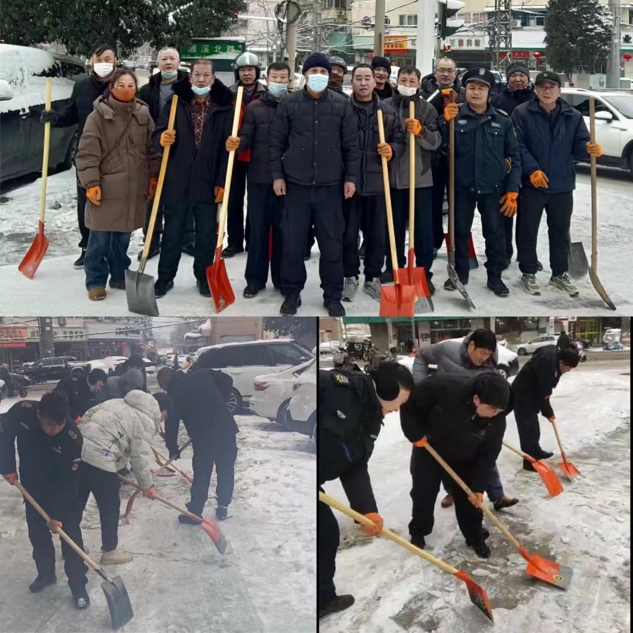 雪冷人心暖,雪厚情更濃。雖然寒風(fēng)凜冽、寒氣逼人,但到處都是同志們忙碌的身影,大家揮舞著鐵鍬,推、鏟、揚各種方法齊上陣,分工明確、配合默契,干勁十足,用汗水融化冰雪、以齊心共御風(fēng)寒,為市民開辟出一道“平安路、暖心路”,確保市民方便出行、安全出行、溫暖出行。
