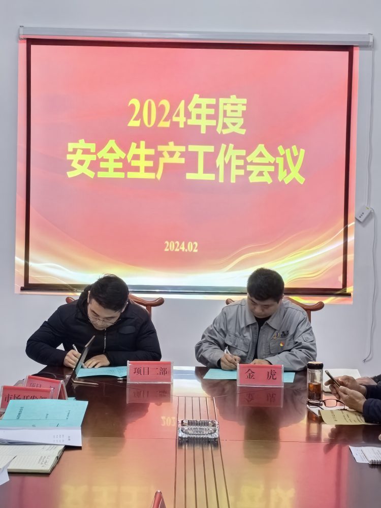 會上,公司副總經(jīng)理劉勇、金虎分別與各部室、項目部負責人簽訂了《2024年安全生產(chǎn)目標管理責任書》。