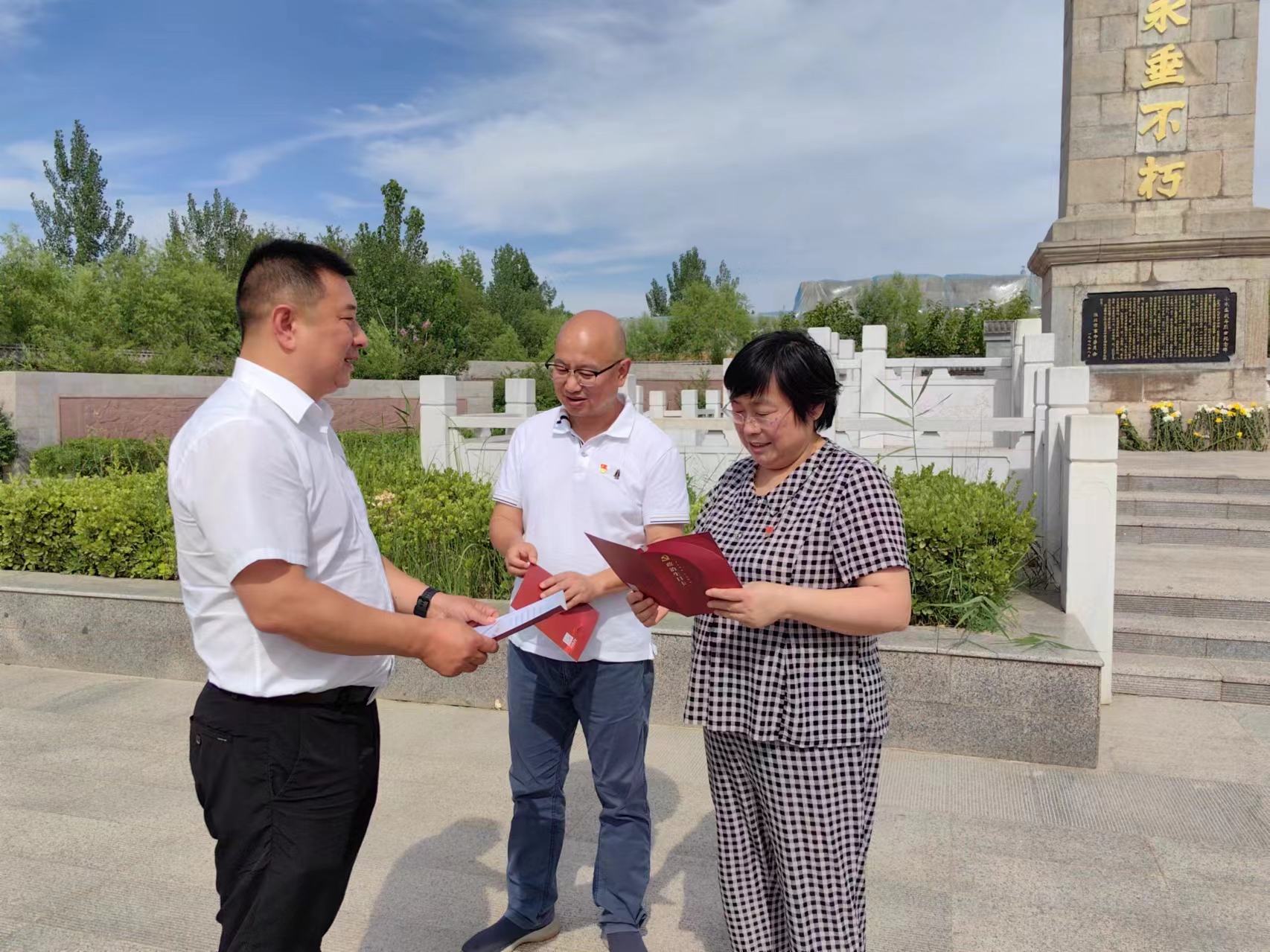走入小朱莊戰(zhàn)斗烈士陵園,全體黨員詳細(xì)了解了眾多英烈的生平和事跡,駐足停留、認(rèn)真聆聽講解。在革命烈士紀(jì)念碑前,全體黨員靜靜肅立,向革命先烈鞠躬默哀三分鐘,全體黨員全場默哀告以哀思,依次向革命先烈敬鞠躬行禮并環(huán)繞革命烈士紀(jì)念碑慢步瞻仰一周,追憶英烈事跡。隨后,在小朱莊戰(zhàn)斗烈士紀(jì)念園內(nèi),全體黨員舉起右拳,重溫入黨誓詞,叩問初心使命,表示要牢記自己的職責(zé)和使命,不斷增強(qiáng)黨性修養(yǎng),始終保持共產(chǎn)黨員的先進(jìn)性和純潔性。最后,支部開展贈書和集體過“政治生日”活動,幫助黨員筑牢信仰之基、補(bǔ)足精神之鈣、把穩(wěn)思想之舵,提升思想政治水平。