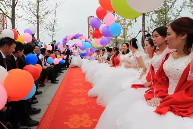 大型集體婚禮在市南湖公園浪漫上演