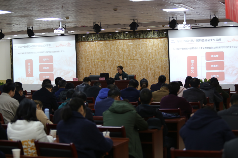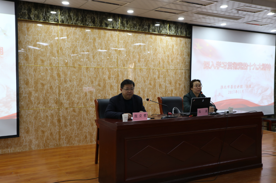 為深入學(xué)習(xí)宣傳貫徹好黨的十九大精神,幫助廣大黨員干部群眾學(xué)習(xí)好、領(lǐng)會(huì)好、落實(shí)好會(huì)議精神,11月24日上午,省委講師團(tuán)第九期“送理論進(jìn)基層”走進(jìn)淮北市建投集團(tuán)?;幢笔形v團(tuán)成員、淮北職業(yè)技術(shù)學(xué)院黨委委員、副院長、教授、博士張亞為淮北市建投集團(tuán)廣大黨員干部宣講了黨的十九大精神,來自集團(tuán)公司的黨員干部近200人聆聽了宣講。