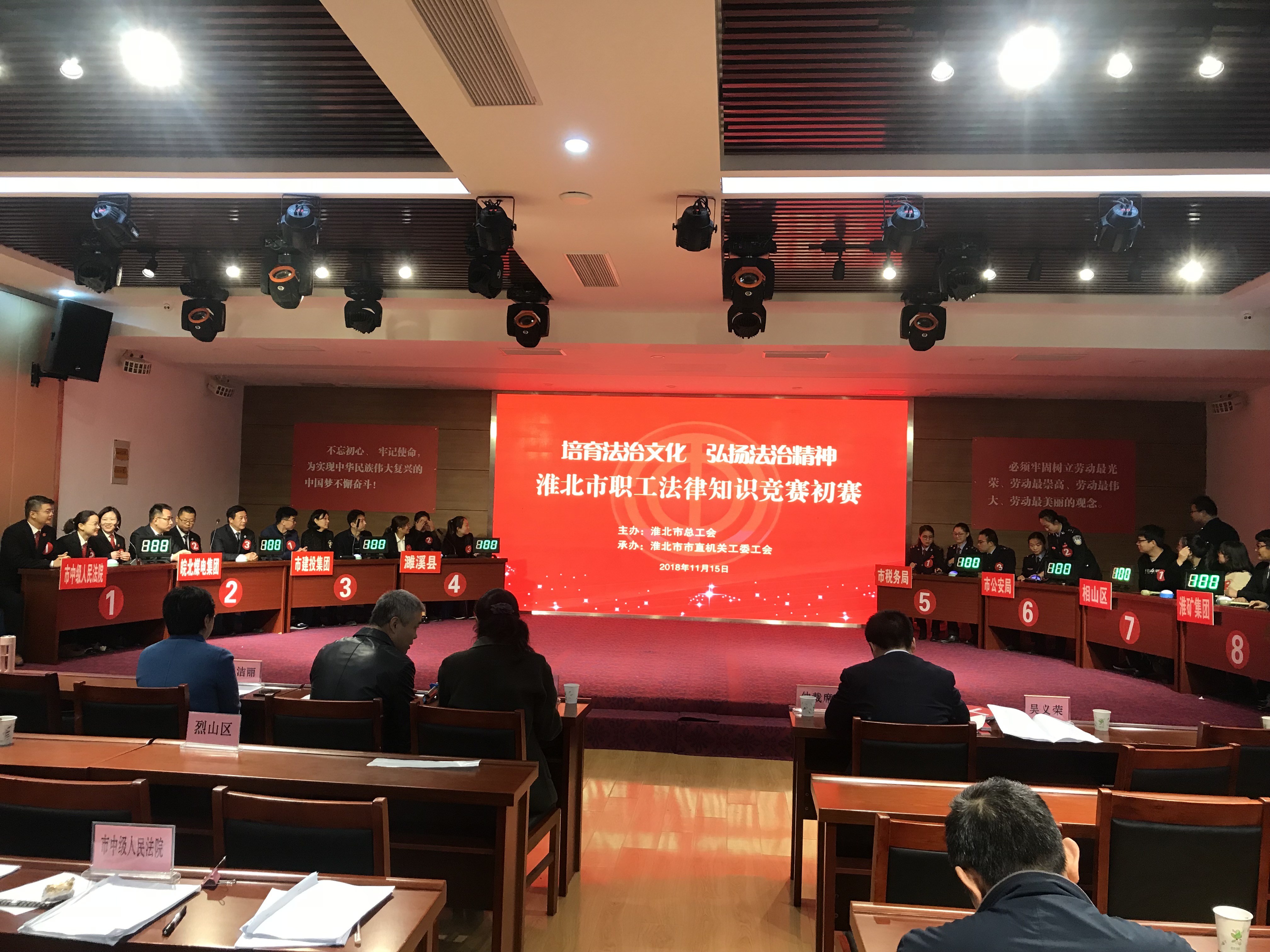 11月15日,“培育法治文化 弘揚(yáng)法治精神”職工法律知識(shí)競(jìng)賽在市職工服務(wù)中心舉行。為深入學(xué)習(xí)貫徹習(xí)近平新時(shí)代中國特色社會(huì)主義思想和黨的十九大精神以及中國工會(huì)十七大精神,進(jìn)一步落實(shí)我市“七五”普法規(guī)劃,豐富法治教育方式和內(nèi)容,提升全市工會(huì)干部和廣大職工的法治素養(yǎng)和道德素質(zhì),市總工會(huì)在全市范圍開展了“培育法治文化 弘揚(yáng)法治精神”主題活動(dòng),市建投集團(tuán)派出代表隊(duì)參賽。經(jīng)過激烈角逐,淮北市建投集團(tuán)代表隊(duì)獲得優(yōu)勝獎(jiǎng)。