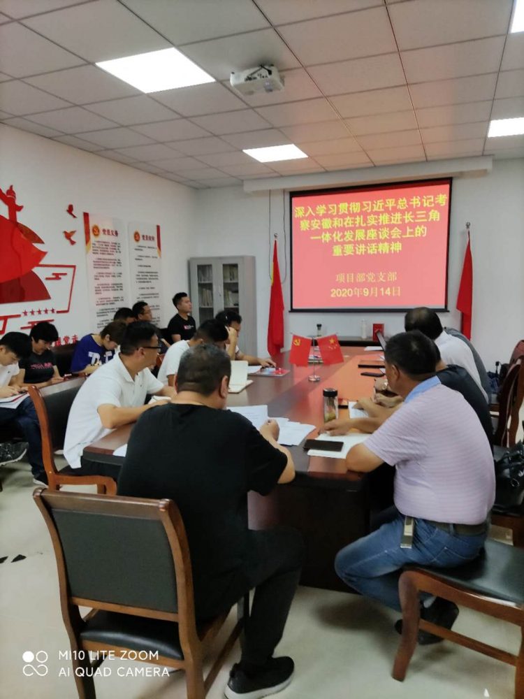 9月14日上午,淮海建工公司項目部黨支部在公司二樓黨員活動室召開支部大會,傳達學(xué)習(xí)習(xí)近平總書記視察安徽、在扎實推進長三角一體化發(fā)展座談會上的重要講話精神,支部全體黨員參加了會議。