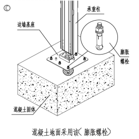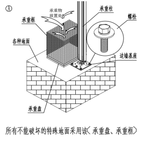安裝地點(diǎn)為水泥或?yàn)r青地面使用膨脹螺絲;(水泥厚度20-25厘米) |